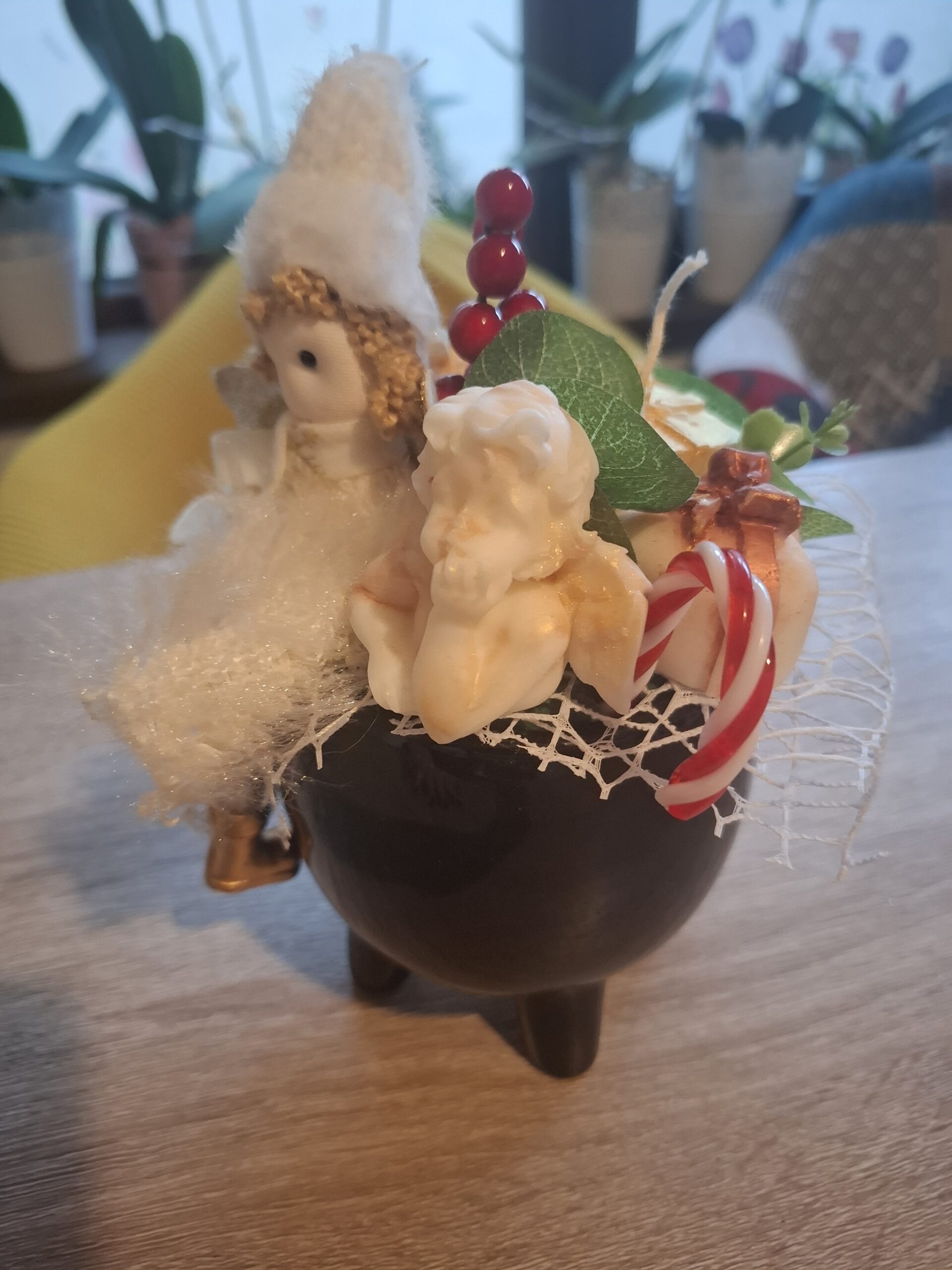 Aranjament din ceara de soia cu ingeras- aroma scortisoara
