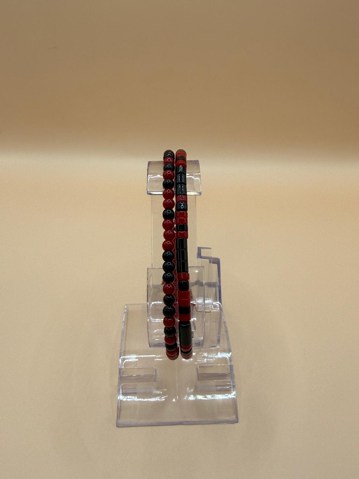 Bratara ajustabila cu pietre onix atent creata. Bratara poate fi purtata atat de femei, cat si de barbati, avand culorile negru si rosu.