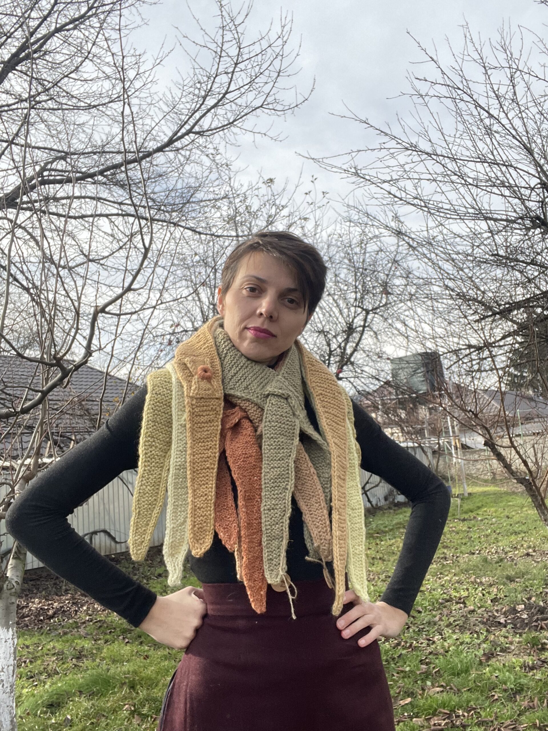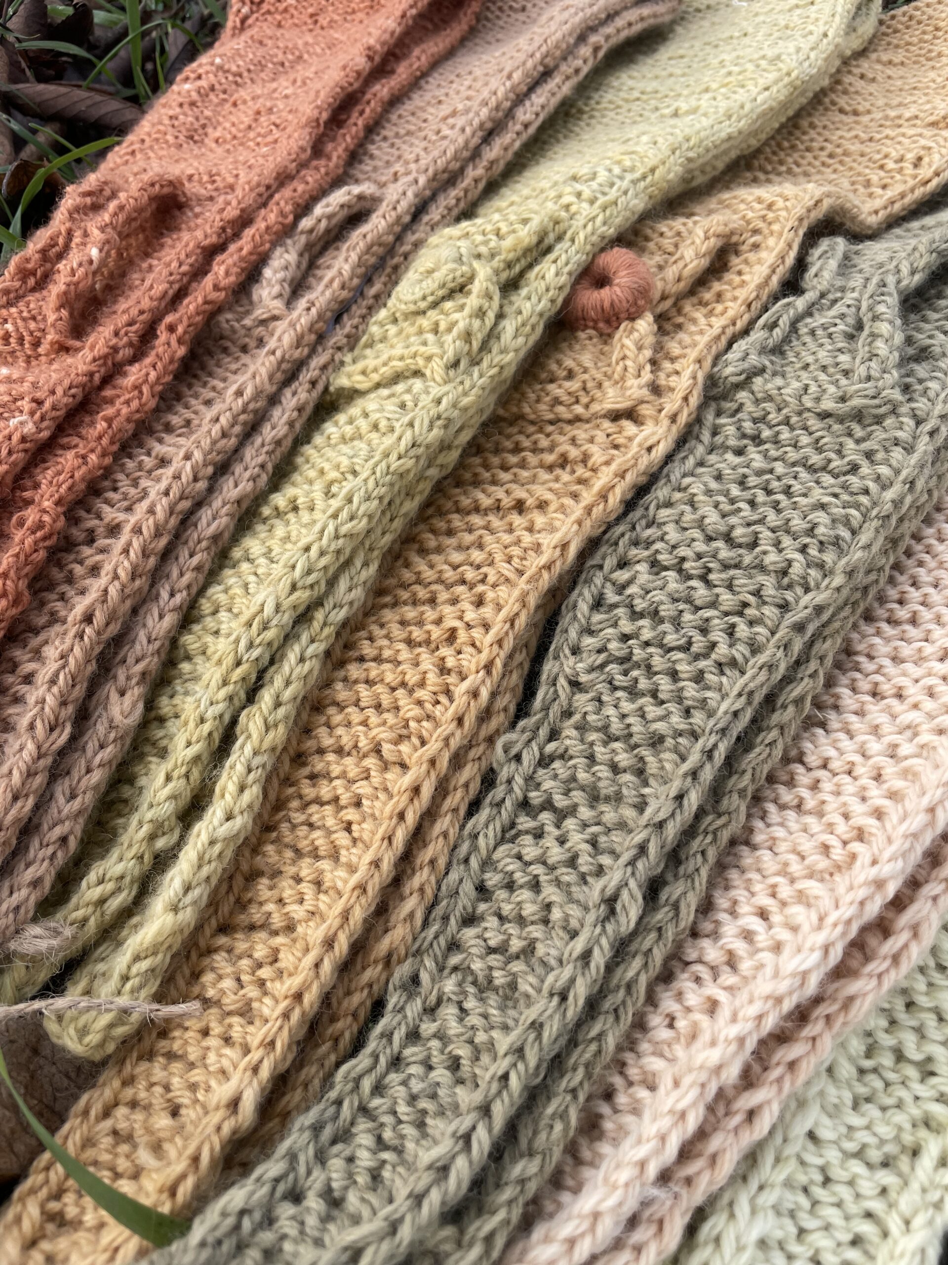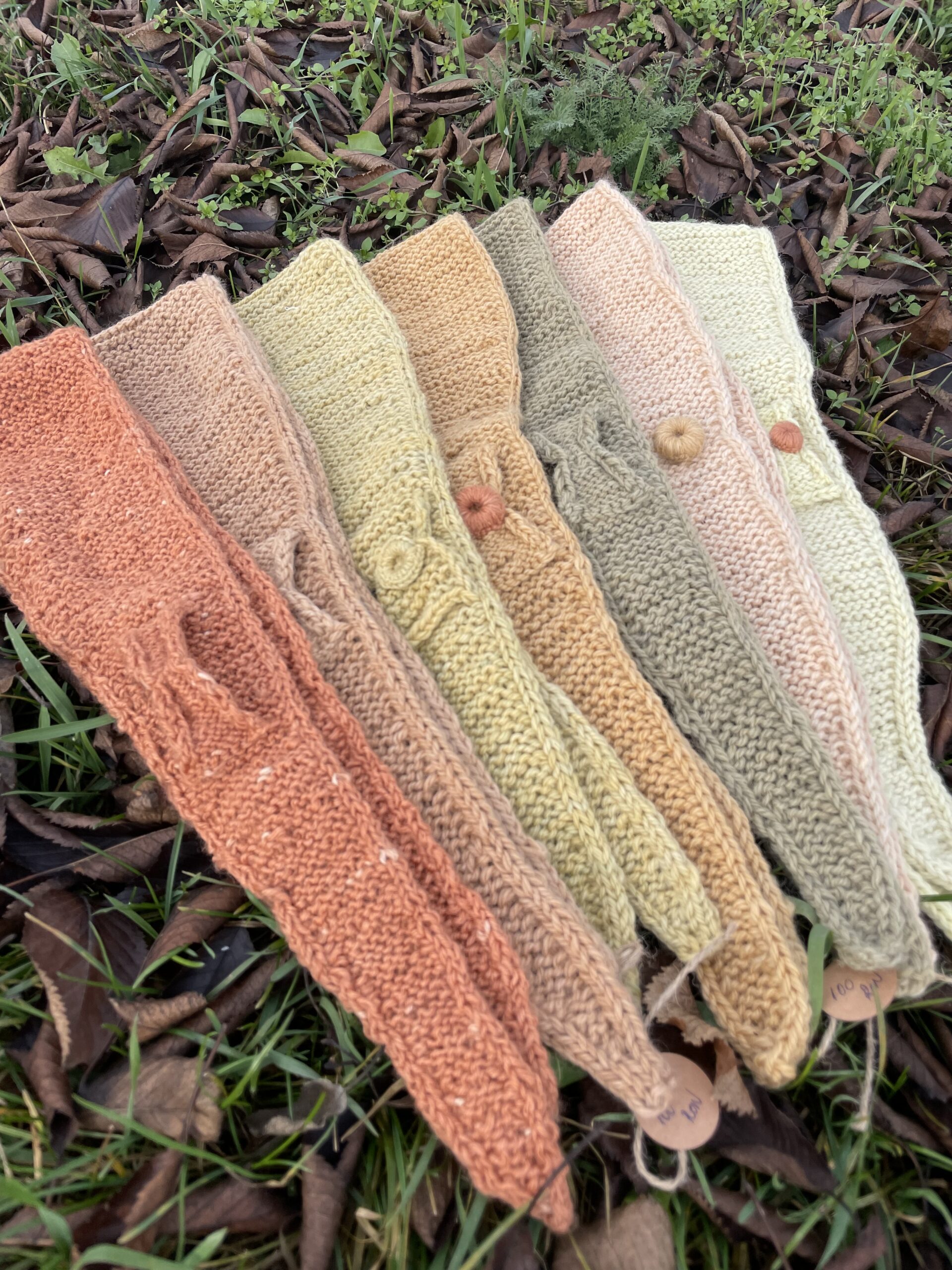 Esarfe din lână merinos împletite manual din diferite culori obținute prin procesul de vopsire vegetala.