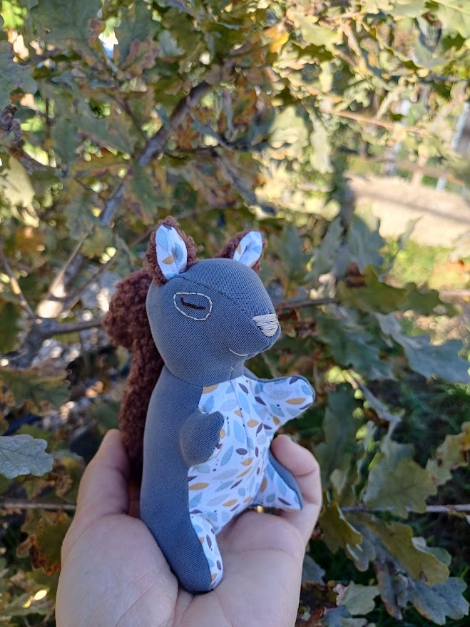 Ghinda jucăușă și veverița zâmbăreață – jucărie textilă handmade
