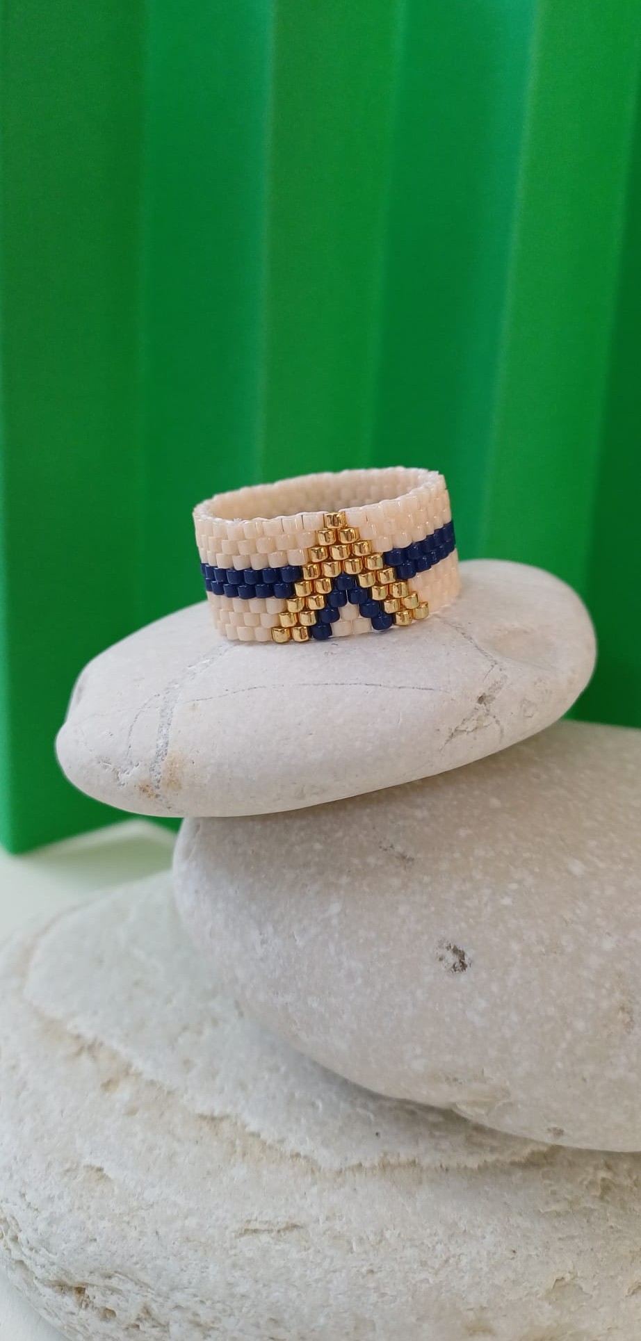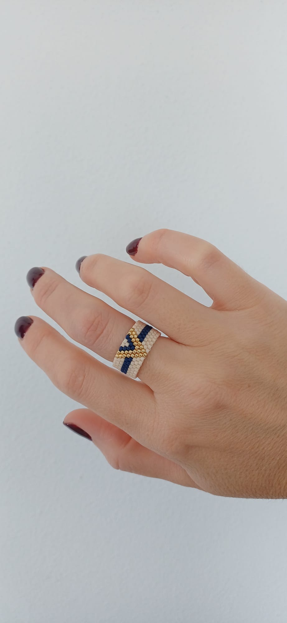 Inelul face parte din colectia „Constelații”. Este realizat din mărgele Miyuki Delica și are circumferința de 6,6 cm.