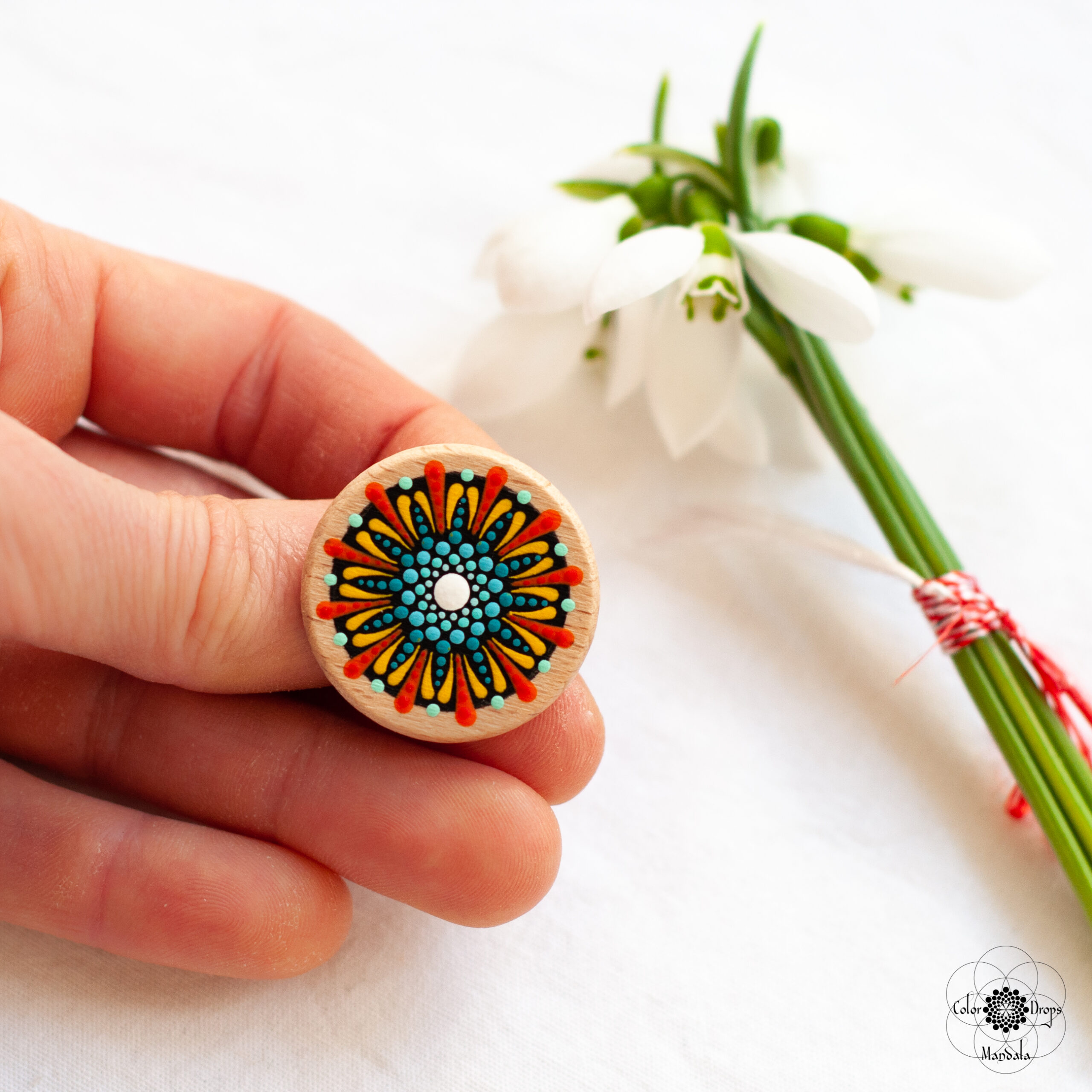 Mărțișor colorat, bun tot anul de purtat! Pictat manual pe lemn în culori vesele și vibrante, acest mărțișor va aduce bucuria primăverii în sufletul oricui îl poartă.