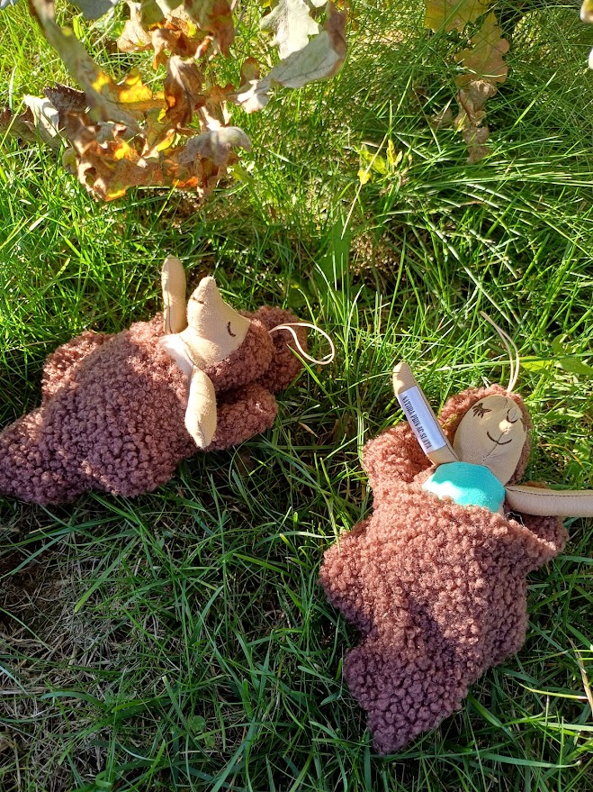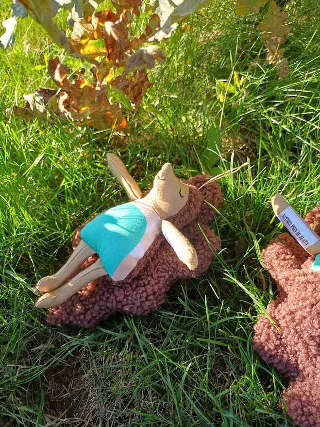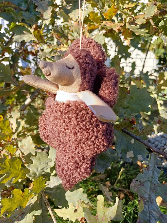 Setul conține un animăluț textil handmade și un culcuș-frunză, lucrate din material certificate, perfect pentru povești, decor și joacă liberă.