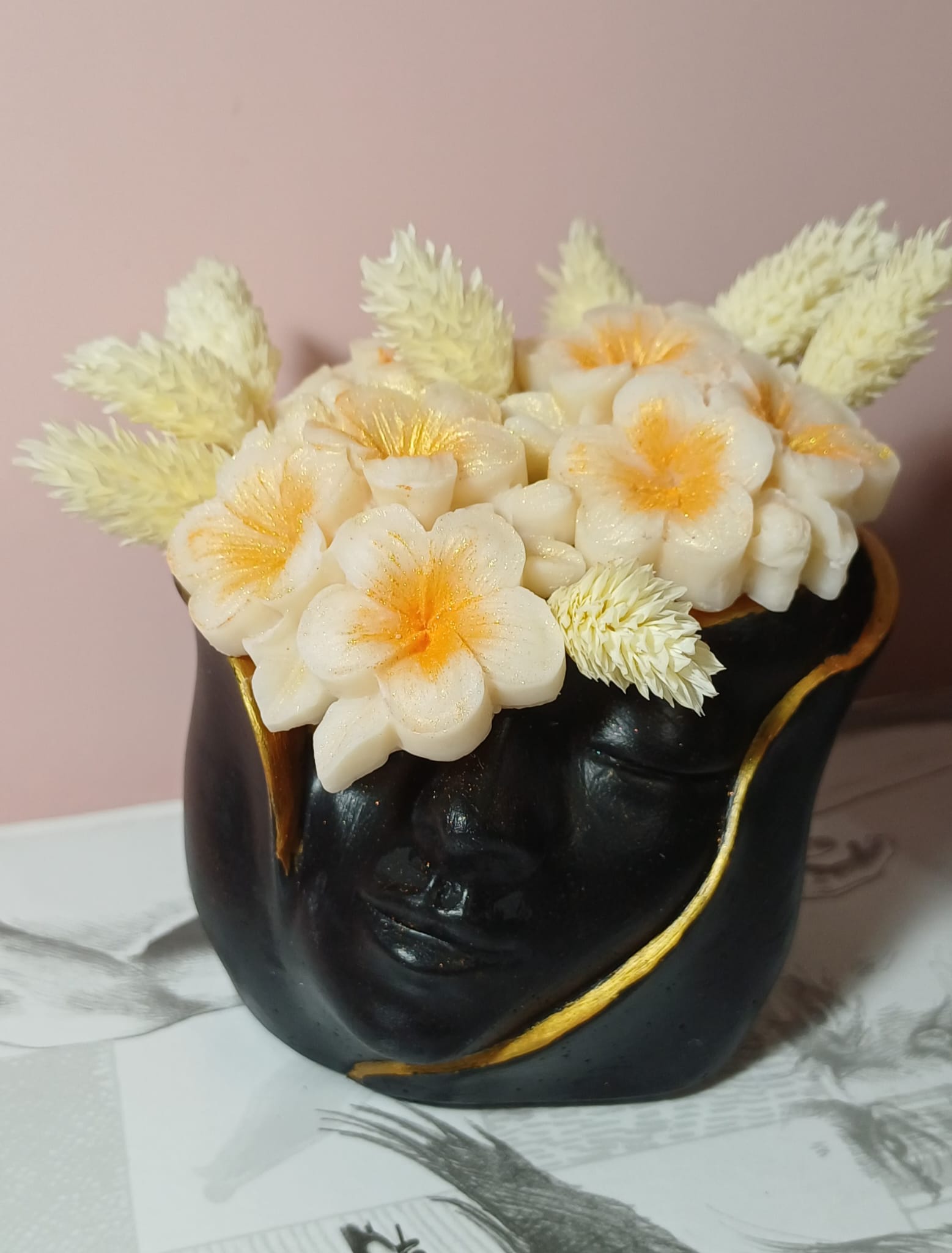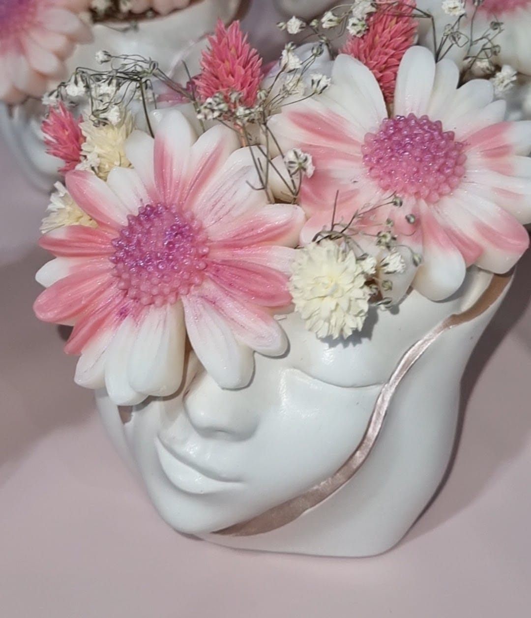 Vaza cu margarete din ceară parfumată și flori uscate este realizat manual din ipsos, potrivit pentru decor sau cadou inimilor dragi.